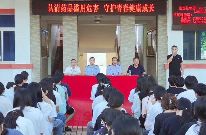 学校党委委员、副校长朱隐星,党委委员张以念,湛江市公安局麻章分局禁毒大队魏太峰、李伟警官,湖光岩派出所相关民警等参加活动。
