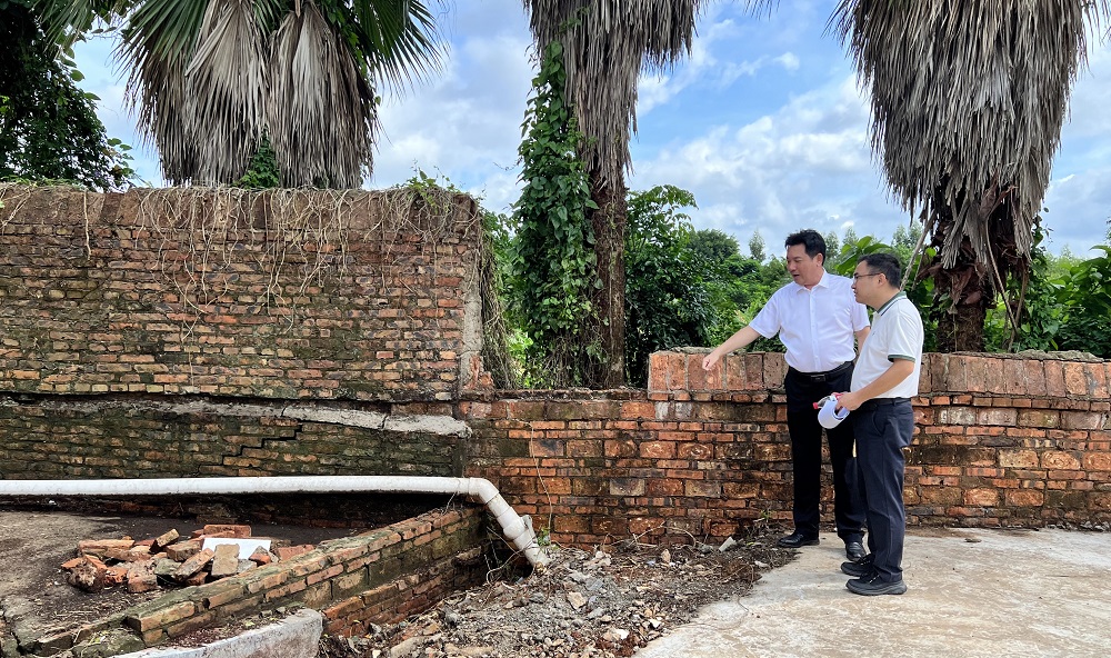 现场查看围墙处老旧沟渠卫生死角