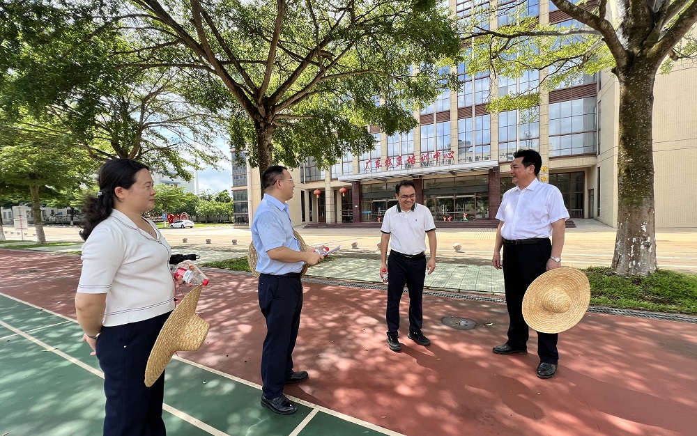 2025年8月20日上午,广东省农垦集团公司(农垦总局)安全监管保卫部部长助理(保卫处六级职员)崔海舟一行2人到省农工商学校督导检查蚊媒疫情防控等工作。湛江农垦集团公司(湛江农垦局)社会事业管理处处长蔡俊英,学校党委书记、校长黄志华陪同。