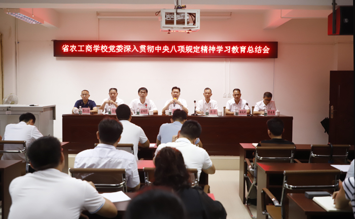 9月28日下午,按照上级党组织部署要求和学校学习教育领导小组办公室工作安排,学校党委召开深入贯彻中央八项规定精神学习教育总结会。学校党委书记、校长黄志华作总结讲话,党委委员、纪委书记、工会主席欧阳雅坚主持会议。学校全体党员参加会议。