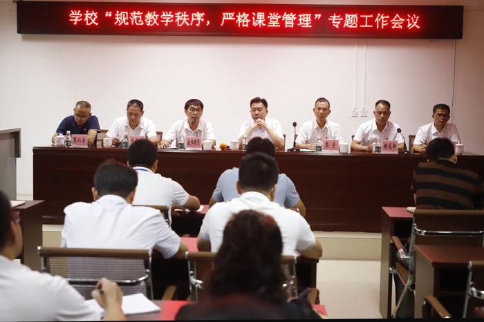 为进一步强化教育教学工作纪律,推进师德师风建设,提升教学质量,9月28日下午,学校组织全体教职工召开“规范教学秩序,严格课堂管理”专题工作会议。学校党委书记、校长黄志华出席会议并讲话。