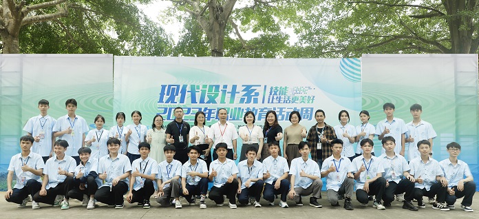 现代设计系主任林晓涛、党支部书记邓晓琴和指导老师、参赛学生合影