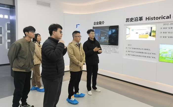 2025年3月7日下午,学校现代农学系主任张承良带队到访广东广垦畜牧集团股份有限公司旗下生物科技有限公司,并与公司技术总监郑力维、产品部经理冯金龙、研发员徐家豪等领导技术骨干和实习学生进行深入的交流。